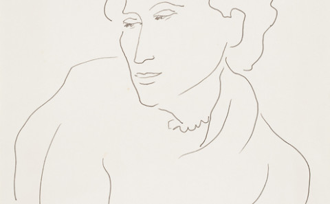 Elmyr de Hory (1906-1976), Woman in Three Quarter Profile, in the style of Henri Matisse (French, 1869 – 1954), ca. 1975, ink on paper. Collection of Mark Forgy. Photo: Robert Fogt.