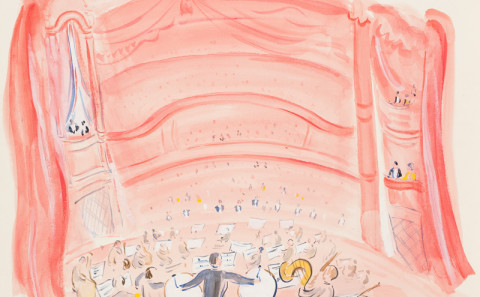 Elmyr de Hory (1906-1976), Orchestral Scene, in the style of Raoul Dufy (French, 1877 – 1953), ca. 1971, watercolor on paper. Collection of Mark Forgy. Photo: Robert Fogt.