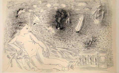 ORIGINAL WORK OF ART by Raoul Dufy (1877 - 1953), La Baigneuse aux Papillons, 20th century, etching on paper. Collection of The John and Mable Ringling Museum of Art, the State Art Museum of Florida, Florida State University, Sarasota, Florida.