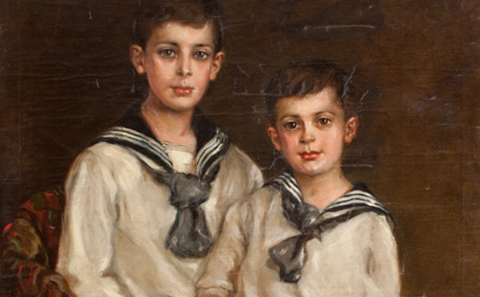 Elmyr de Hory (1906-1976), Portrait of Elmyr and his brother Stephan, in the style of Philip de László (Hungarian, 1869-1937), date unknown , oil on canvas. Collection of Mark Forgy. Photo: Robert Fogt.