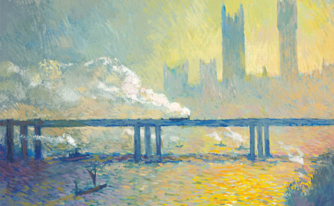 John Myatt (b. 1945), Charing Cross Railway taken from the Savoy, in the style of Claude Monet (French, 1840 – 1926), 2011, oil on canvas. Courtesy of Clive and Shyamali Fenton, UK. Photo: Washington Green Fine Art.