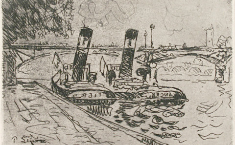 ORIGINAL WORK OF ART by Paul Signac (French, 1863–1935), Paris: Le Pont des Arts with Tugboats (Paris: Le Pont des Arts avec Remorqueuers), 1927, etching and aquatint. The Museum of Modern Art, New York. Larry Aldrich Fund, 1951. ©The Musuem of Modern Art/Licensed by SCALA / Art Resource, NY.
