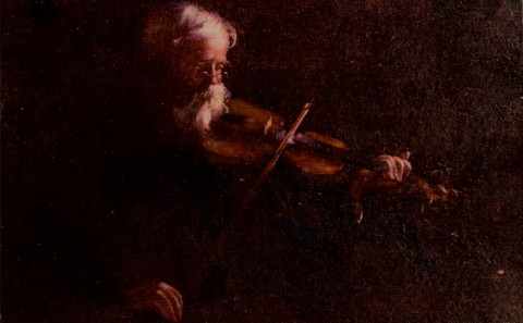 Mark Landis (b. 1955), The Old Violinist, in the style of Charles Courtney Curran (American, 1861-1942), 2013, oil on canvas. Courtesy of Mark Landis. Photo: Laila Abdul-Hadi Jadallah, International Arts & Artists.