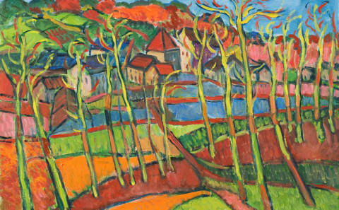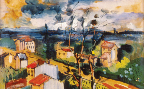 ORIGINAL WORK OF ART by Maurice de Vlaminck (French, 1876-1958), Village, ca. 1908, gouache, watercolor, and ink on paper laid down on canvas. Courtesy of the Oklahoma City Museum of Art. Gift of Mr. and Mrs. R.A. Young. Photo: Shannon Kolvitz.