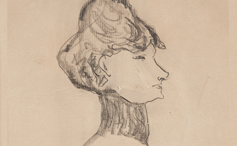 Elmyr de Hory (1906-1976), Portrait of a Woman, in the style of Henri de Toulouse-Lautrec (French, 1864 – 1901), ca. 1968, pencil on paper. Collection of Mark Forgy. Photo: Robert Fogt.