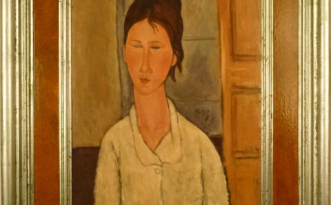 Elmyr de Hory (1906-1976), Portrait of a Woman, in the style of Amedeo Modigliani (Italian, 1884-1920), ca. 1975, oil on canvas. Collection of Mark Forgy. Photo: Robert Fogt.
