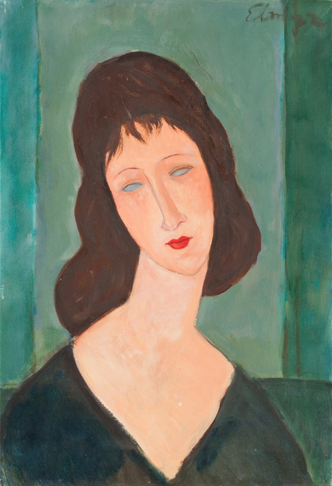 Elmyr de Hory (1906-1976), Portrait of a Woman, in the style of Amedeo Modigliani (Italian, 1884-1920), ca. 1975, oil on canvas. Collection of Mark Forgy. Photo: Robert Fogt.