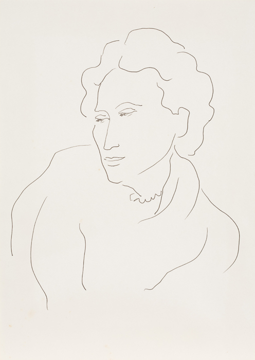 Elmyr de Hory (1906-1976), Woman in Three Quarter Profile, in the style of Henri Matisse (French, 1869 – 1954), ca. 1975, ink on paper. Collection of Mark Forgy. Photo: Robert Fogt.