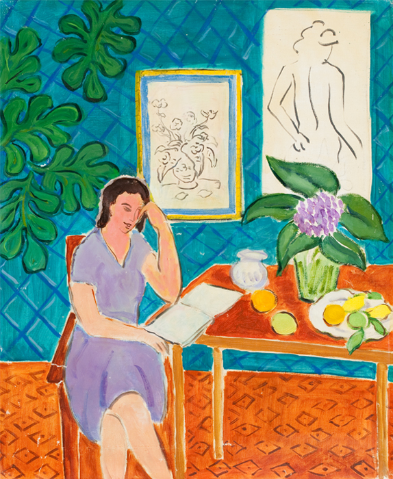Elmyr de Hory (1906-1976), Woman at Table, in the style of Henri Matisse (French, 1869 – 1954), ca. 1975, oil on canvas. Collection of Mark Forgy. Photo: Robert Fogt.