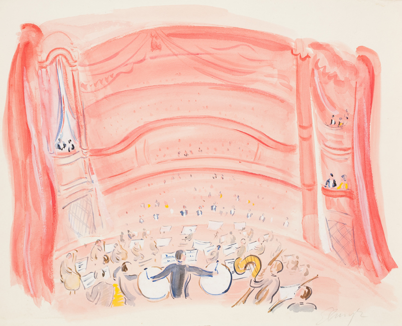 Elmyr de Hory (1906-1976), Orchestral Scene, in the style of Raoul Dufy (French, 1877 – 1953), ca. 1971, watercolor on paper. Collection of Mark Forgy. Photo: Robert Fogt.