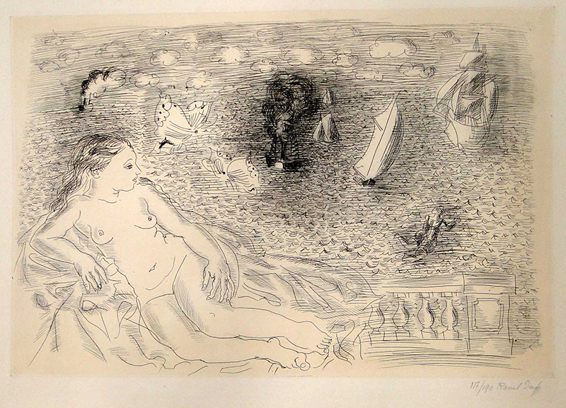ORIGINAL WORK OF ART by Raoul Dufy (1877 - 1953), La Baigneuse aux Papillons, 20th century, etching on paper. Collection of The John and Mable Ringling Museum of Art, the State Art Museum of Florida, Florida State University, Sarasota, Florida.