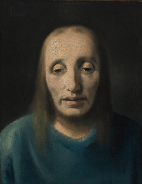 Han van Meegeren (1889-1947), Girl with a Blue Bow, in the style of Johannes Vermeer (Dutch, 1632-1675), ca. 1924, gelatin-glue medium and pigment over obscured 17th century painting fragment. Courtesy of The Hyde Collection, Glens Falls, New York.