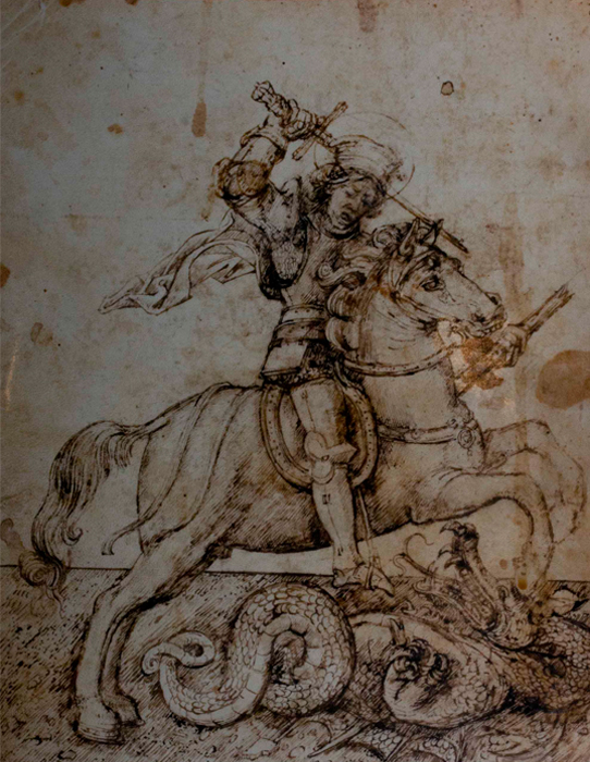 Eric Hebborn (1934-1996), St. George and the Dragon, in the style of Jacopo Bellini (Italian, 1400 - 1471), 1994; signed and numbered 37/40, produced for the exhibition The Difficulties of Attribution, at Archeus Fine Art, London; 1994, color photograph. Collection of Colette Loll.