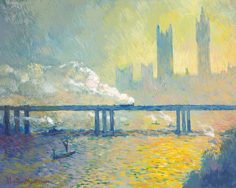 John Myatt (b. 1945), Charing Cross Railway taken from the Savoy, in the style of Claude Monet (French, 1840 – 1926), 2011, oil on canvas. Courtesy of Clive and Shyamali Fenton, UK. Photo: Washington Green Fine Art.