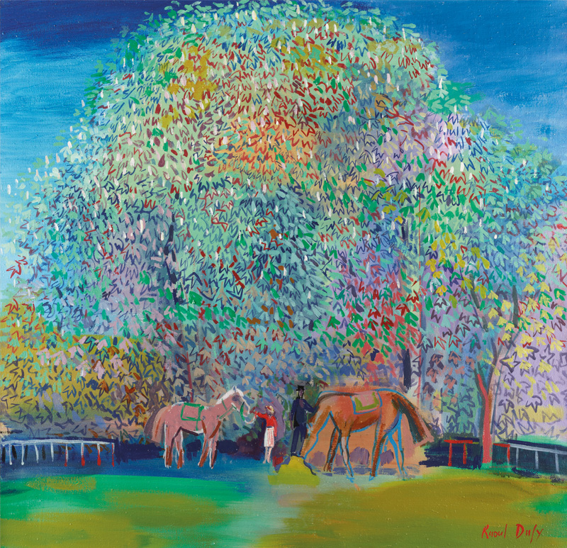 John Myatt (b. 1945), The Paddock, in the style of Raoul Dufy (1877 – 1953), undated, oil on canvas. Courtesy of Mr. T. West & Mr. K. West, Photo: Washington Green Fine Art.