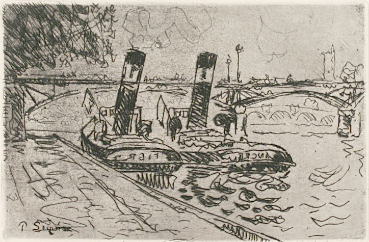 ORIGINAL WORK OF ART by Paul Signac (French, 1863–1935), Paris: Le Pont des Arts with Tugboats (Paris: Le Pont des Arts avec Remorqueuers), 1927, etching and aquatint. The Museum of Modern Art, New York. Larry Aldrich Fund, 1951. ©The Musuem of Modern Art/Licensed by SCALA / Art Resource, NY.