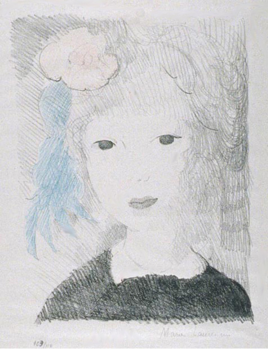 ORIGINAL WORK OF ART by Marie Laurencin (1883-1956), Young Girl of the Rose (Petite fille à la rose), from the suite Life in the Castle (La vie de château), 1926, color lithograph on paper, ed. 109/110. Courtesy of the Weatherspoon Art Museum, The University of North Carolina at Greensboro, Bequest of Etta and Claribel Cone, 1949.