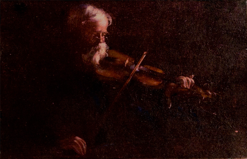 Mark Landis (b. 1955), The Old Violinist, in the style of Charles Courtney Curran (American, 1861-1942), 2013, oil on canvas. Courtesy of Mark Landis. Photo: Laila Abdul-Hadi Jadallah, International Arts & Artists.