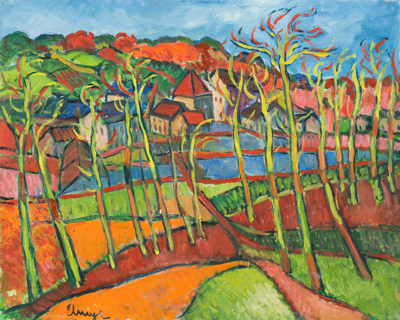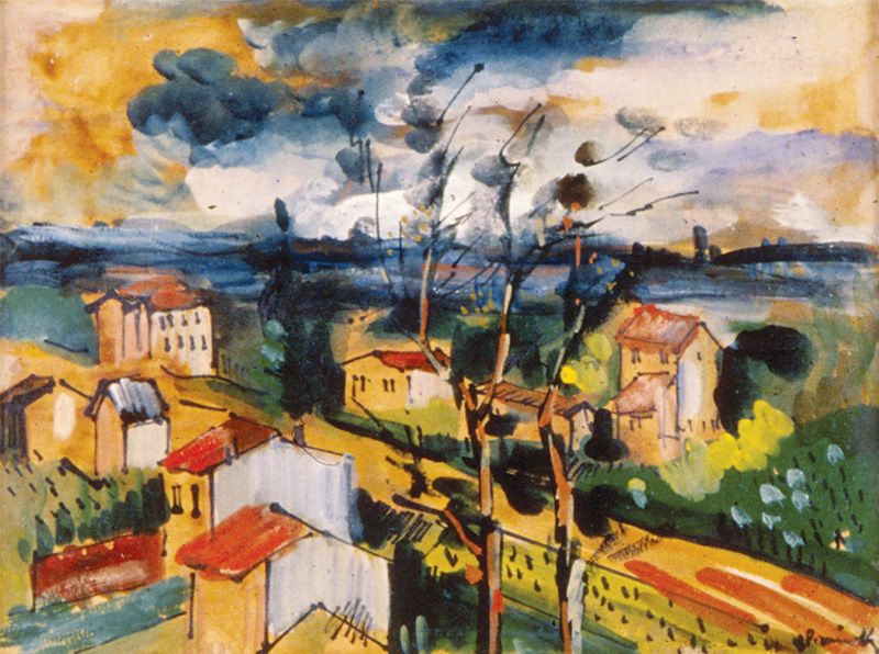 ORIGINAL WORK OF ART by Maurice de Vlaminck (French, 1876-1958), Village, ca. 1908, gouache, watercolor, and ink on paper laid down on canvas. Courtesy of the Oklahoma City Museum of Art. Gift of Mr. and Mrs. R.A. Young. Photo: Shannon Kolvitz.