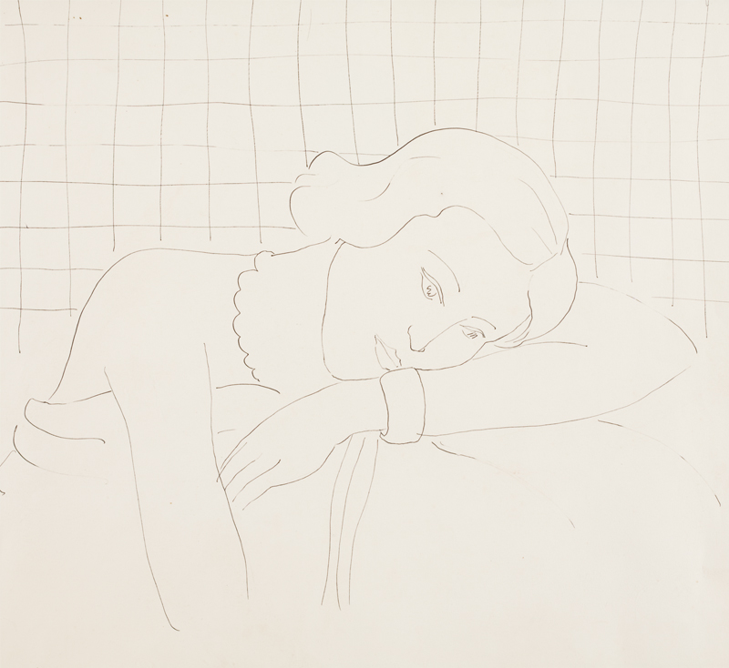 Elmyr de Hory (1906-1976), Woman Resting Her Head on Arm, in the style of Henri Matisse (French, 1869 – 1954), ca. 1968, pen and ink on paper. Collection of Mark Forgy. Photo: Robert Fogt.