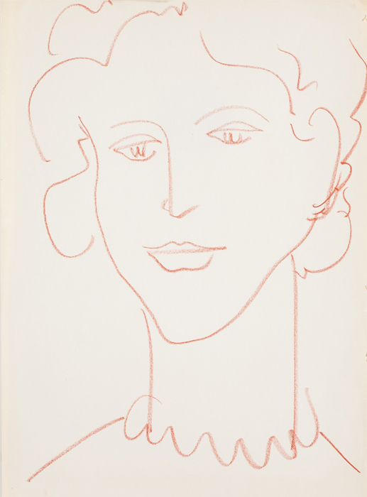 Elmyr de Hory (1906-1976), Portrait of a Woman, in the style of Henri Matisse (French, 1869 – 1954), 1974, crayon on paper. Collection of Mark Forgy. Photo: Robert Fogt.